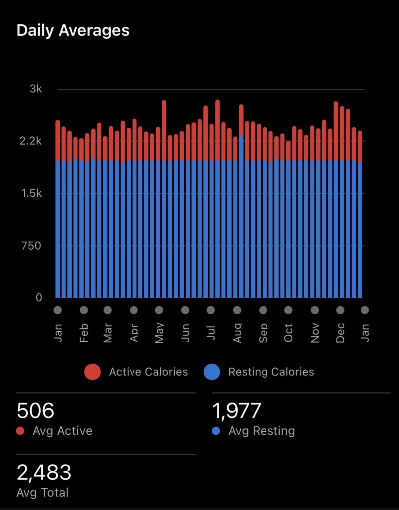 2026年はクロスフィット・ボクシング・チャリ通がベースになりそう。これに加えてサッカーやらスキー、マウンテンバイク等が入る。ここ数年は1日平均500kcal燃やすことを目安にしているが、2026年はもう少しギアを上げて平均600kcalくらい燃やしたい。