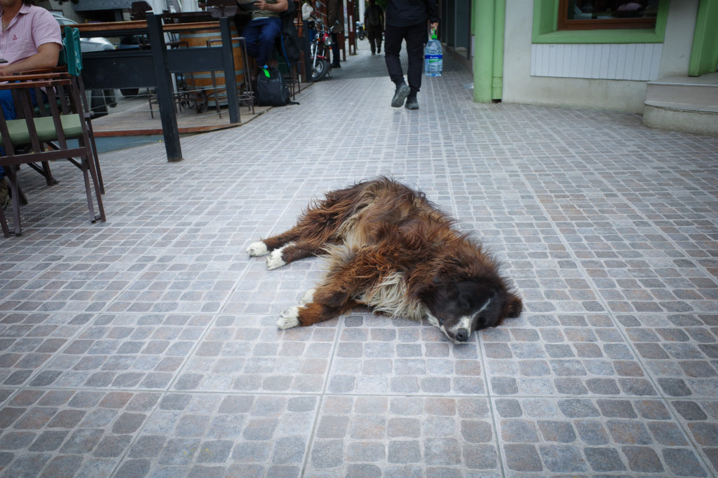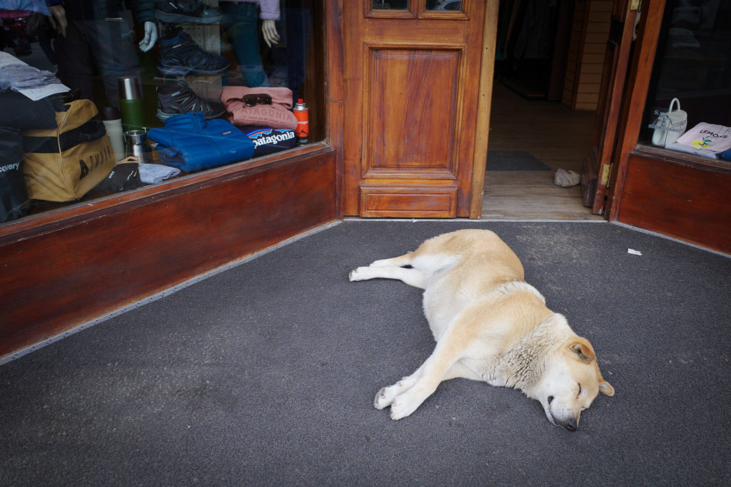 パタゴニアの入口、エルカラファテという街のそこら中で寝てる大型犬